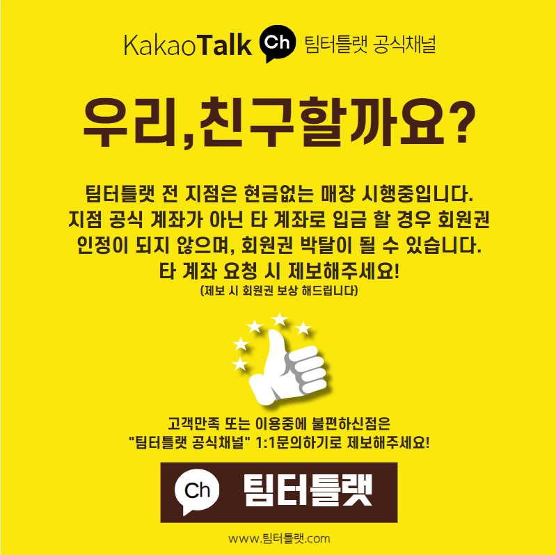 만족 또는 불편하신점은 카카오톡 "팀터틀랫"