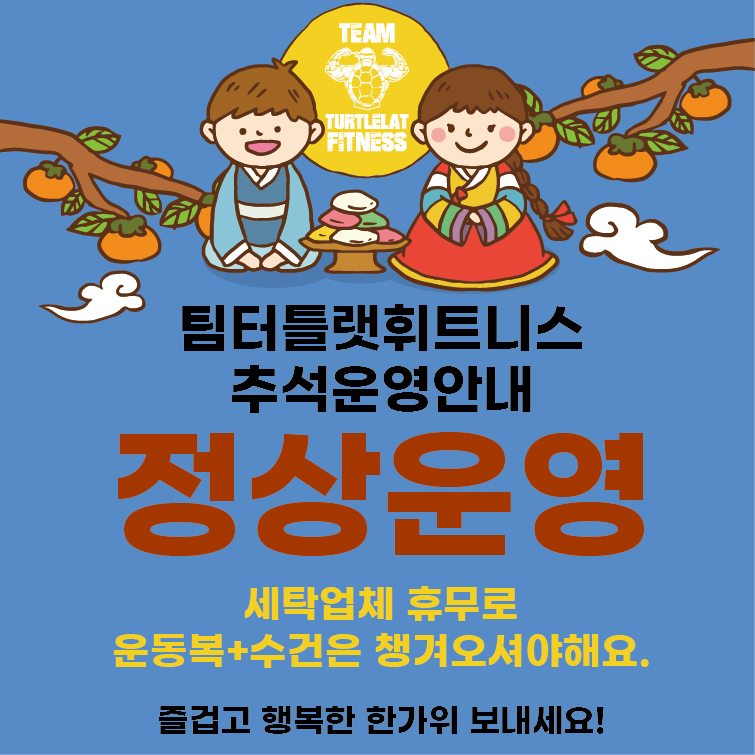 제목 팀터틀랫휘트니스 추석연휴운영공지