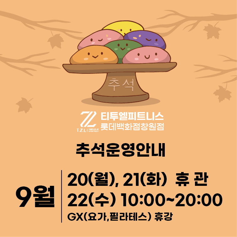 9월 22일(수) 10:00~20:00 (GX 휴강)