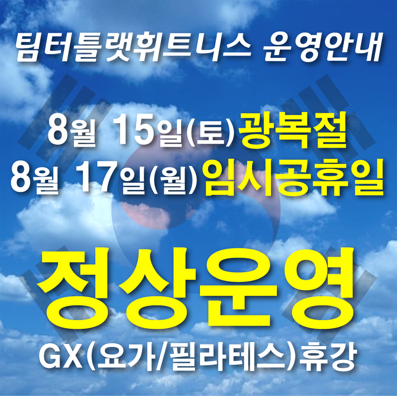 모두 정상운영합니다. 단, GX(요가,필라테스)는 휴강합니다.