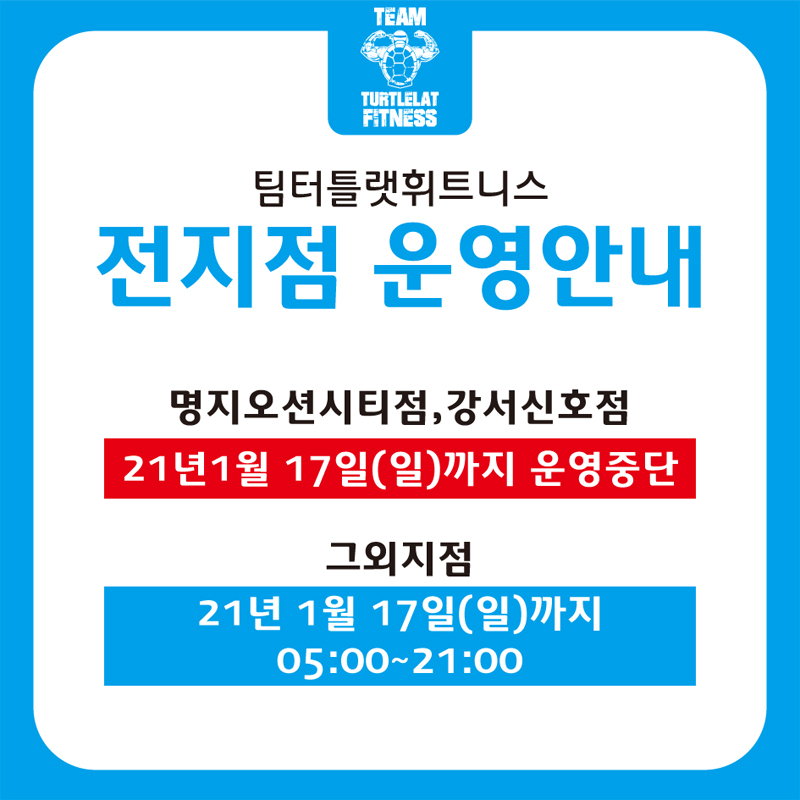 21년 1월 17일(일)까지 운영중단 됨을 알려드립니다.